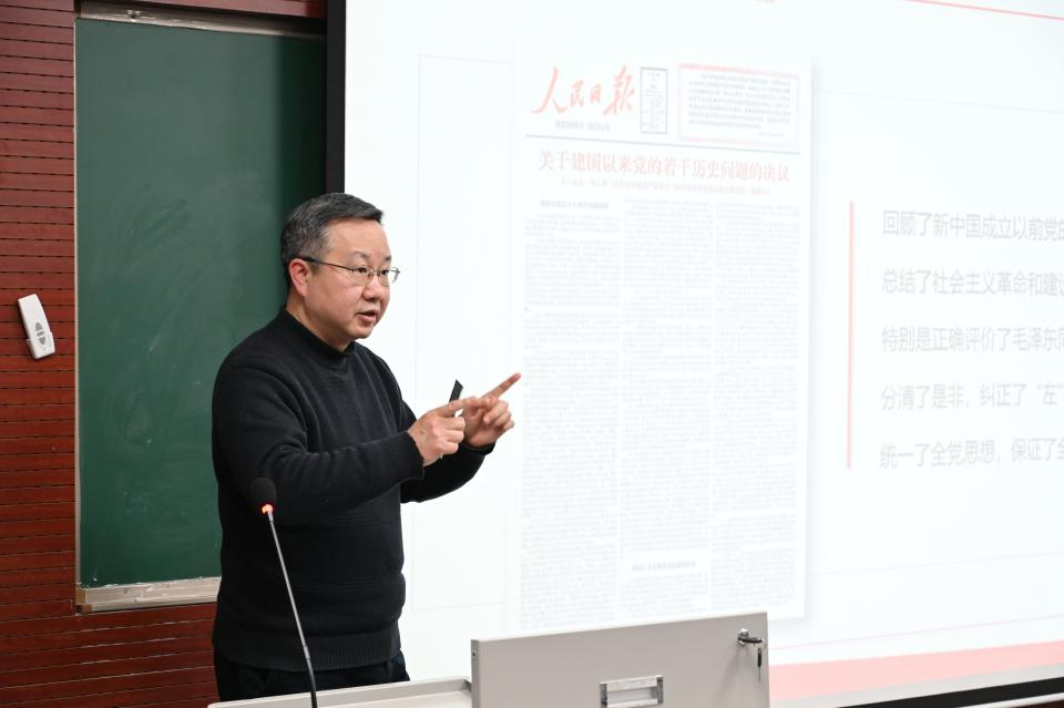 院长张邦辉为学院全体教职工宣讲党的十九届六中全会精神,学院党委书记罗滌、副院长徐鲲、吕进、副书记温健琳出席会议,学院近70余名师生参加宣讲会。
