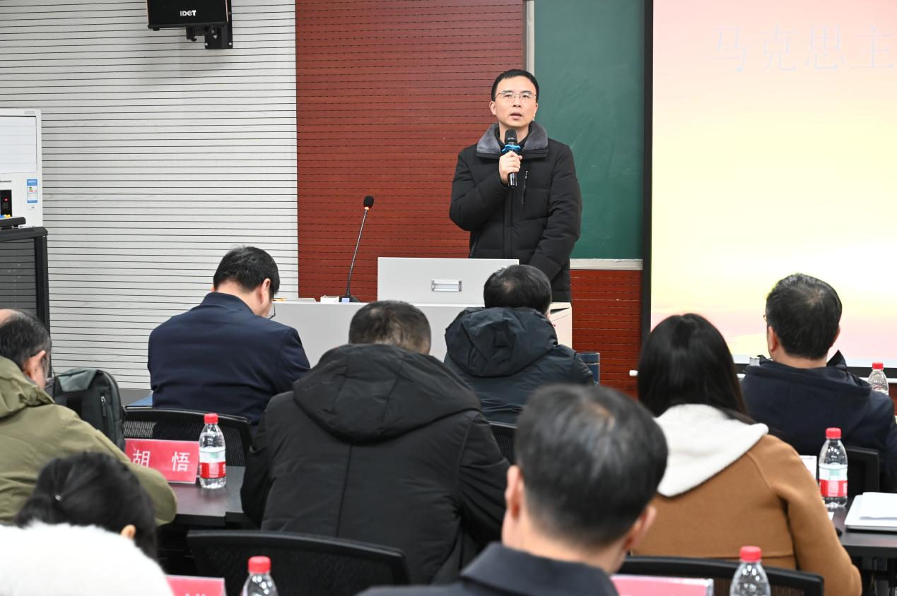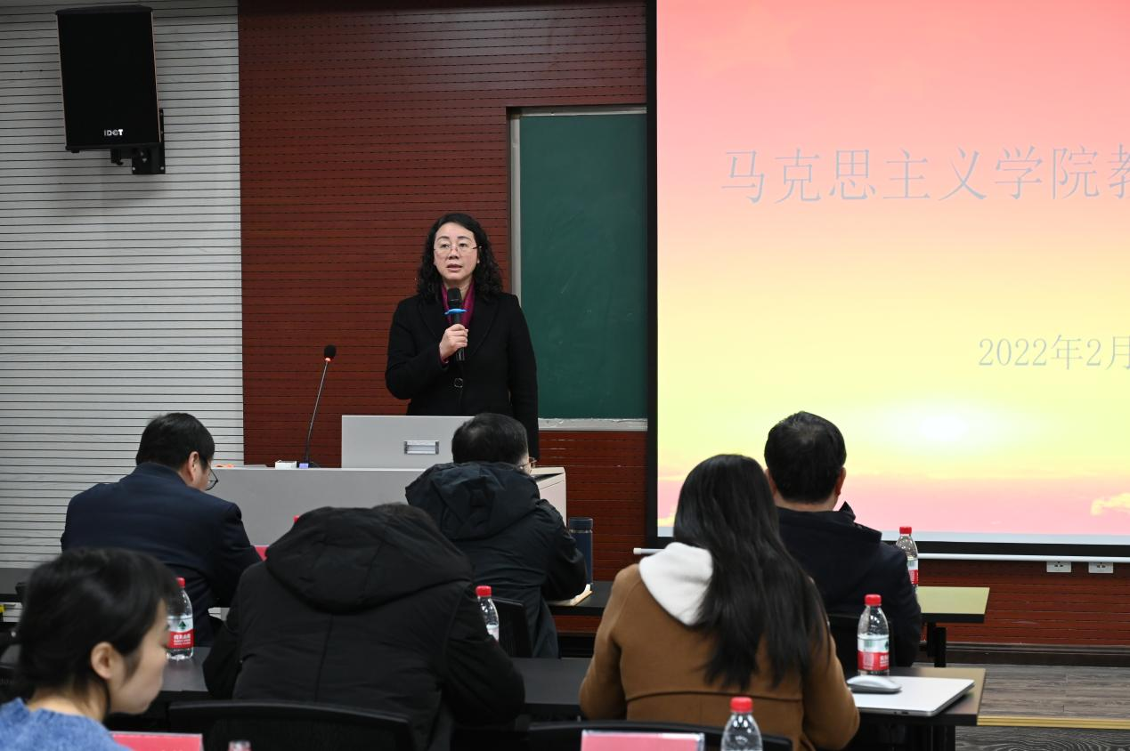 徐鲲副院长针对教学工作进行了通报和布置。徐院长强调了教学评估工作的重要性,提醒各位老师严格课堂要求,勤于反思教学情况。他同时重点强调各位老师要严格遵循学校改卷的相关制度,对于思政课专职教师、青年教师的改卷工作进行专门培训指导。