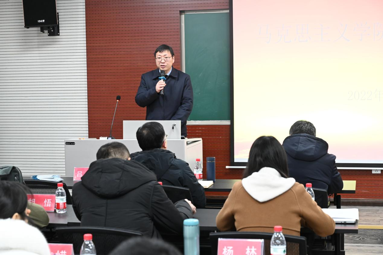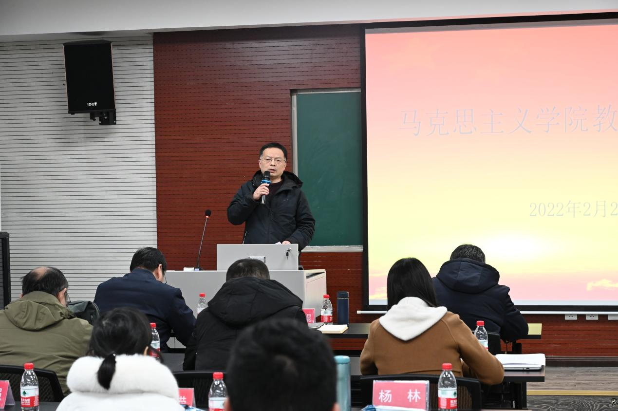 学院院长张邦辉首先发表讲话。张院长指出,新学期学院要进一步强化学科建设,加强推进博士点建设,并同时加快启动本科建设的各项准备工作。针对日常工作,张院长强调,思政课教师要时刻铭记教书育人的使命,调动积极性和创造性,不断提升自身的教学科研能力。最后,张院长提醒各位教职工注意舒缓工作压力,保持乐观心态和健康的心理。