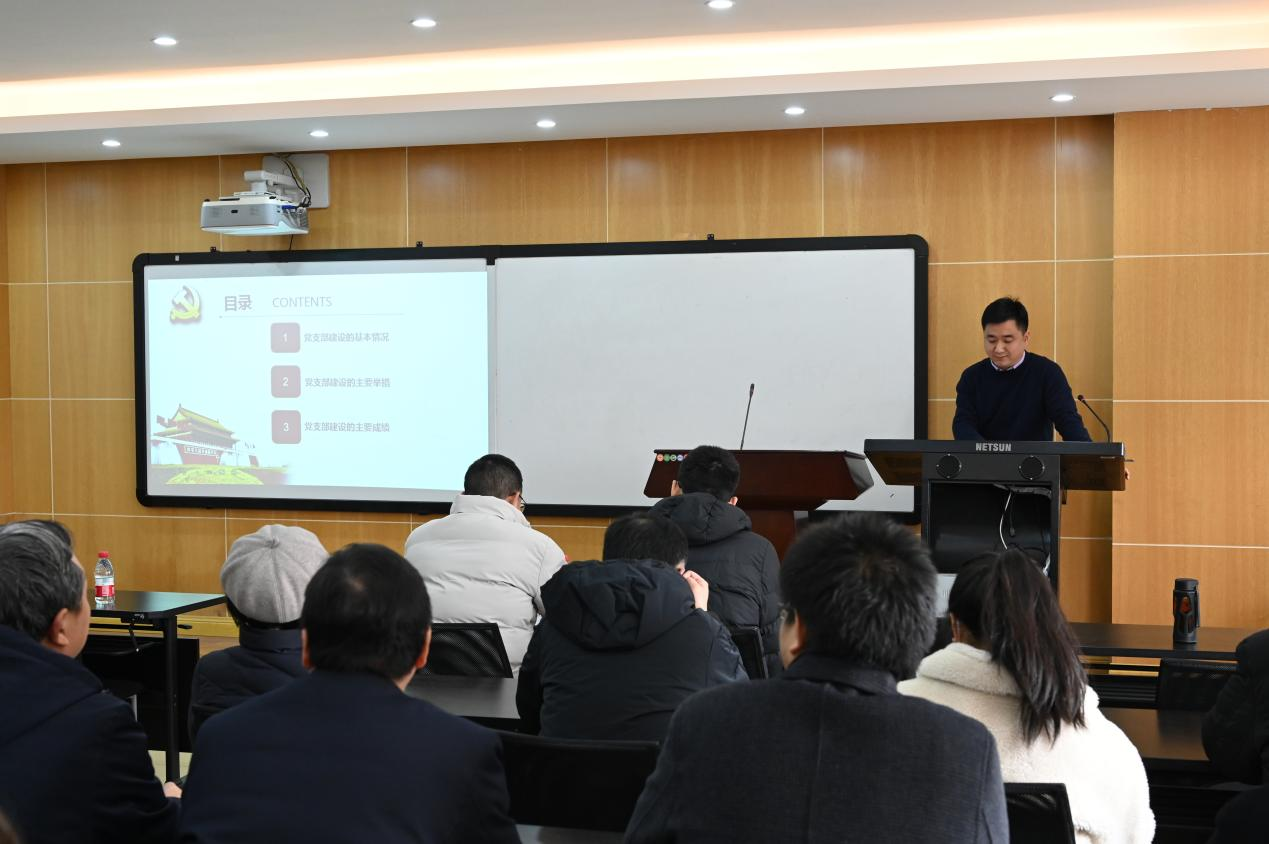 会上,与会人员首先集体观看了中国近现代史纲要教研室教师党支部的建设成果展示视频,见证了长期以来支部建设工作取得的显著成效。随后,中国近现代史纲要教研室教师党支部书记卢旭东围绕“三创三融”就党支部建设的基本情况、主要举措、主要成绩三方面进行了详细的汇报,并提出“机制创新”为先、“组织建构”为要、“队伍打造”为重、“资源汇聚”为基四条重要举措。他强调,全体党员同志要积极探索构建“学、研、讲、宣”相结合的政治理论学习新模式,切实发挥支部党员加强理论学习研究、宣传的积极性、主动性和创造性。
