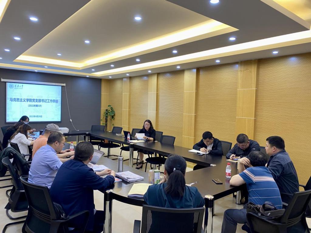 在414会议室召开2022年第三次党支部书记工作例会,学院党委书记罗滌、组织员王玉琴、各支部书记参加会议。