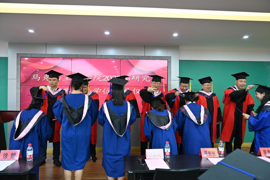 温健琳首先介绍出席典礼的领导和老师,随后学院副院长徐鲲宣读了授予龚代军等37名同学硕士学位的名单,宣读完毕后,参会导师为毕业生授予硕士学位证并拨穗,祝贺他们顺利毕业。