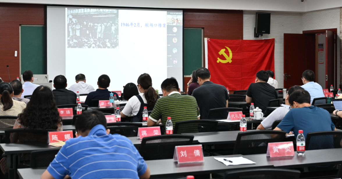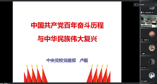 于406会议室举行党员教育培训专家讲座。讲座特邀中央党校卢毅教授为我院全体党员作题为“中国共产党百年奋斗历程与中华民族伟大复兴”的专题讲座。马院全体教职工党员线下参与,全体学生党员通过腾讯会议线上平台参与讲座,讲座由91AV