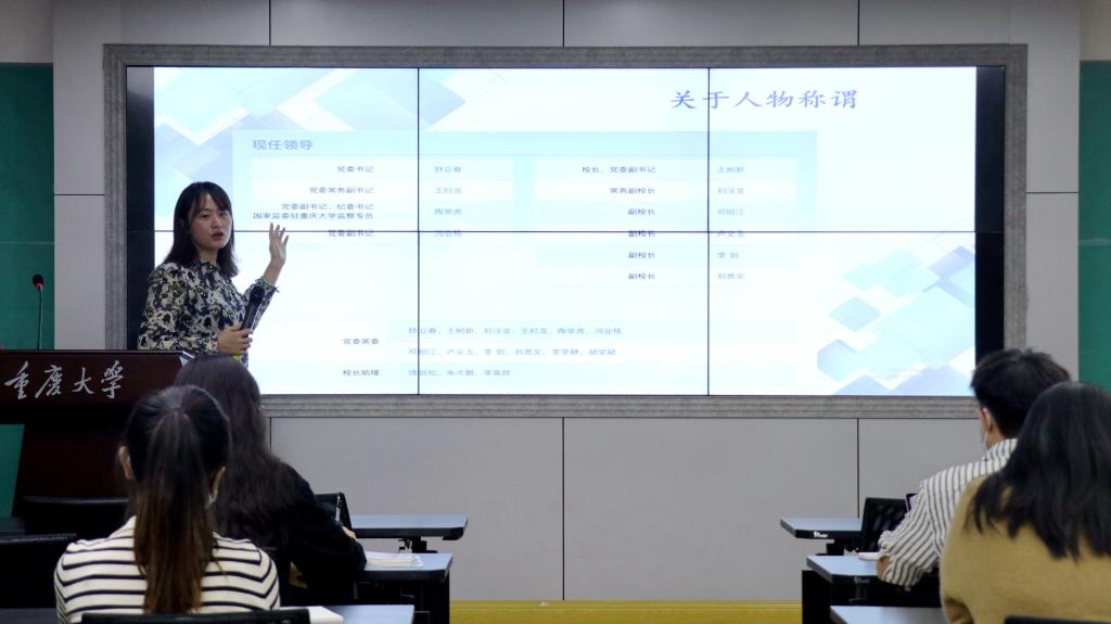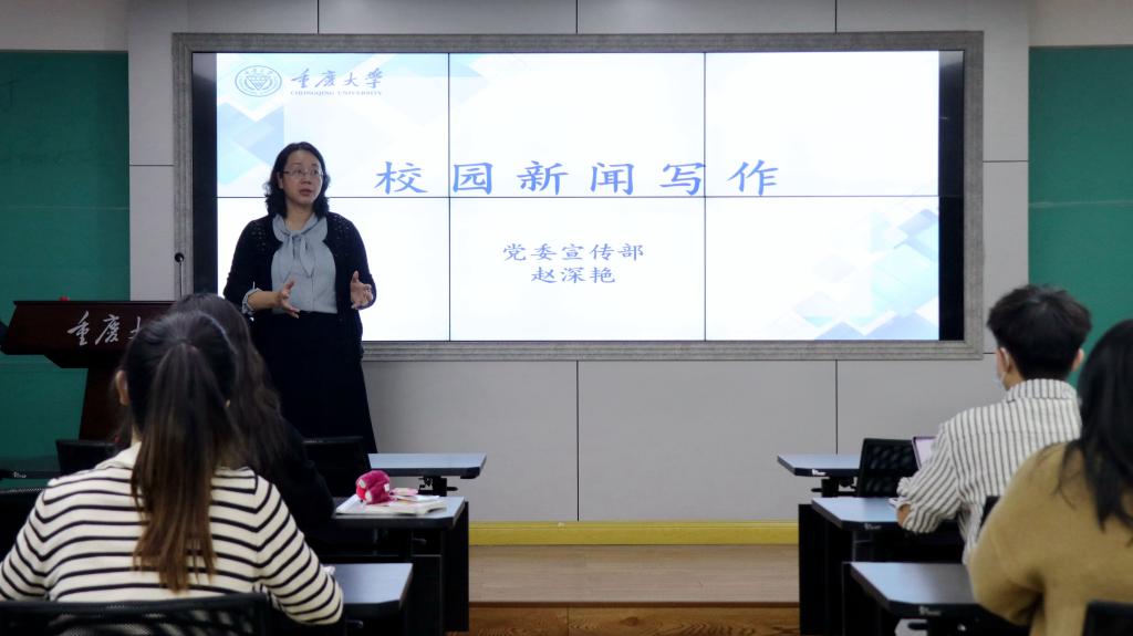 的校内新闻宣传平台,使大家了解了当前的主流宣传渠道。其次,赵深艳老师强调学院的宣传工作要全面反映学院整体工作水平,不仅仅是学生工作,更不仅仅是学生活动。要根据国家战略和政策,有意识地去挖掘和策划新闻。再次,赵深艳老师从标题、导语、正文和结语四个部分,分别进行详细讲解校园新闻写作应该怎么写。最后,赵深艳老师通过列举多个摄影作品,为大家讲述了新闻摄影的规范和方法,包括全景照和人像照的具体拍照要求以及拍摄方式。通过一个个生动案例,深入浅出地讲解,让同学们得以更好的理解和学习。