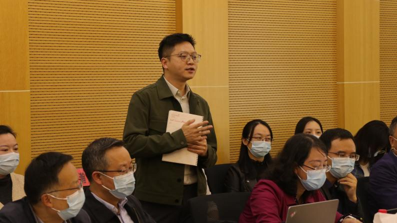 、现存问题、思路举措、意见建议四个方面详细汇报了学院近年来的发展、面临的主要问题和下一步工作打算。马院教师代表围绕学科建设、人才引进、课程设置、社会服务、国际影响提升、科研评价优化、职称评审考核体系等提出建议。相关职能部门负责人就教师代表提的问题和建议作了交流反馈。