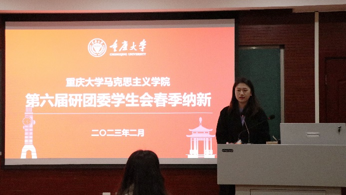 接着,进入部门干事纳新环节。蔡金曼同学结合自身经历,表达了对研团委学生会的向往,希望能为学院的学生工作贡献一份自己的力量。