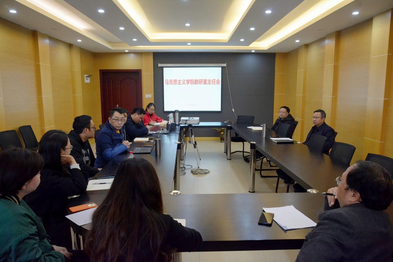 张邦辉院长首先传达了《关于做好2023年春季学期学生教育引导工作的通知》的文件精神,强调各教研室要组织开展好专题教学集体备课,聚焦疫情防控、经济发展等社会热点话题,直面学生存在的普遍性思想困惑,为学生解疑释惑、注入思想正能量,上好“开学第一堂思政课”。张院长对新学期教学工作安排作了部署,强调要狠抓下一阶段学科建设、人才培养等关键性、全局性的工作,并听取了各教研室主任对上学期工作的总结以及本学期教学工作思路。
