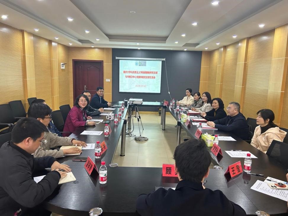 中国近现代史纲要教研室教师党支部与重庆市精神卫生中心李小兵书记一行在学院414会议室就示范党支部建设开展了深入交流,学院党委书记罗滌、党委副书记温健琳参加了座谈会。