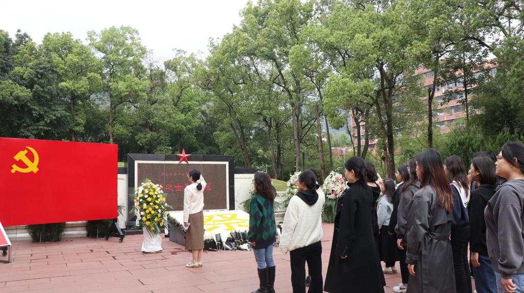 在烈士墓前,2021级硕士研究生胡铃英同志带领全体同学共同学习了革命先烈英勇事迹,重温入党誓词。同学们肃立向革命烈士默哀,瞻仰烈士纪念碑,并献花和鞠躬,致以崇高的敬意和无限的缅怀。