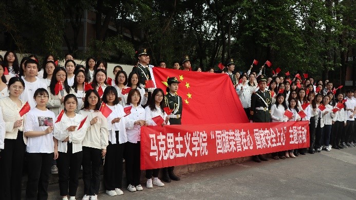 全体学生在A区思群广场参加升旗仪式,开展“国旗荣誉在心 国家安全上心”主题活动。
