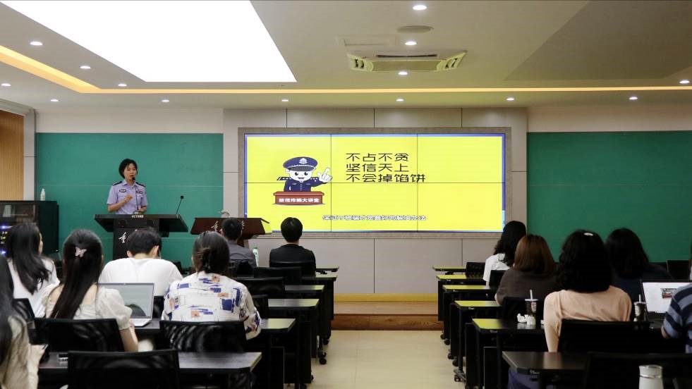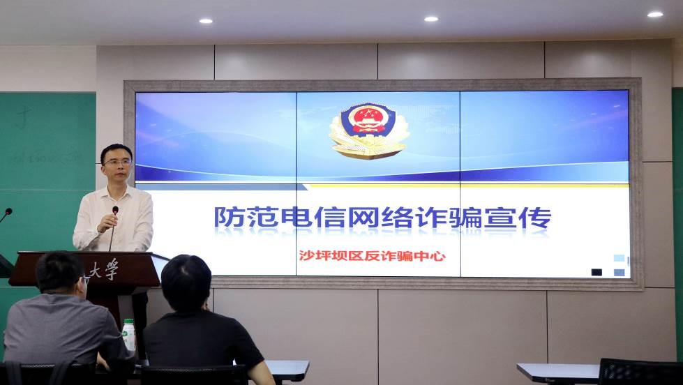 为进一步提高我院研究生防范电信网络诈骗的意识,2023年5月18日下午,我院特邀沙坪坝区反诈骗中心民警在我院408会议室开展防范电信网络诈骗宣传活动。活动由院党委副书记、纪委书记温健琳主持,我院2021级、2022级硕士研究生积极参加。