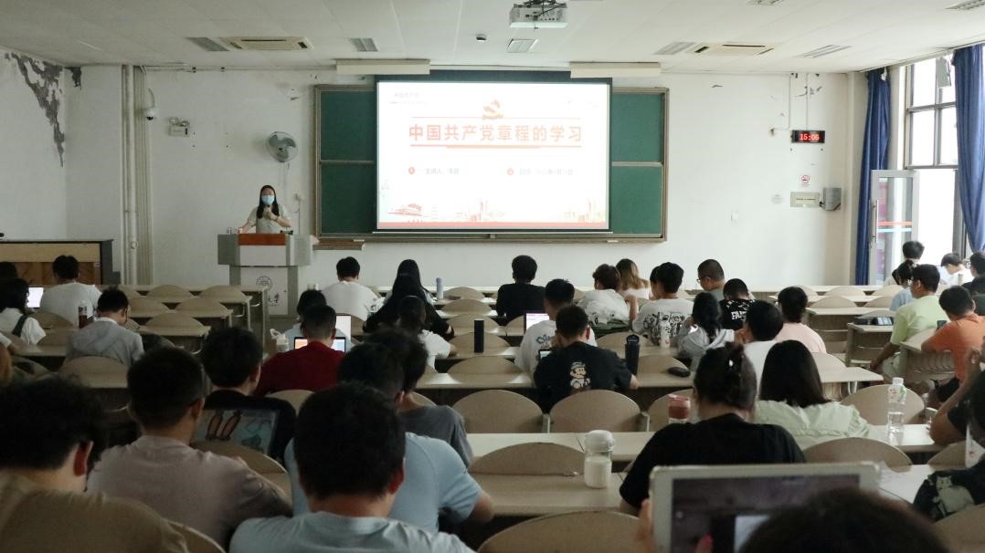李颖老师带领同学们回顾了党的光辉历程、党章的历史沿革与时代特征,引导同学们深入理解把握中国共产党百年奋斗历程。李颖老师重点解读了党的二十大通过的《中国共产党章程(修正案)》的核心要义,她指出党章(修正案)为推进党的建设新的伟大工程提供了根本遵循,为以党的自我革命引领社会革命提供了行动指南,为世界其他马克思主义政党建设提供了经验借鉴。最后,她强调一个党员就是“一面旗帜”,并对在座同学们提出三点要求:一要遵守党章,严格践行党章要求;二要率先示范,敢于发挥先锋模范作用;三要知行合一,坚持真学实做、学以致用。
