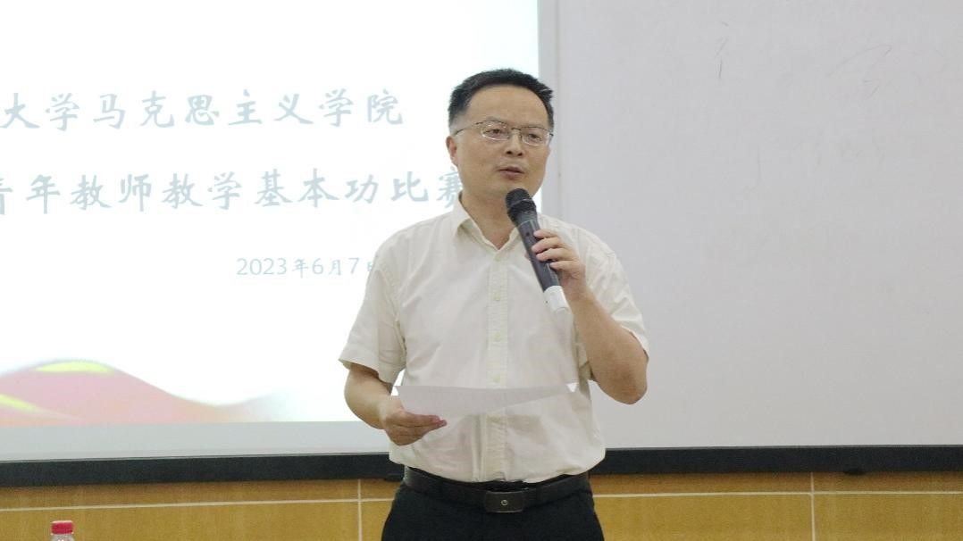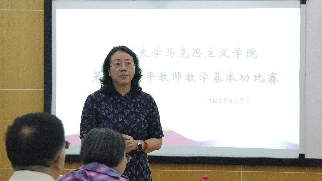 罗滌为本次比赛致辞。她指出本次比赛旨在展示我院青年教师教学风采、为青年教师提供交流教学方法、切磋教学技艺的平台,希望大家通过本次比赛锻炼教学基本功、开拓备课授课思路、总结交流教学经验,在日后的工作中,努力成长为学校思政教学工作的中坚力量。