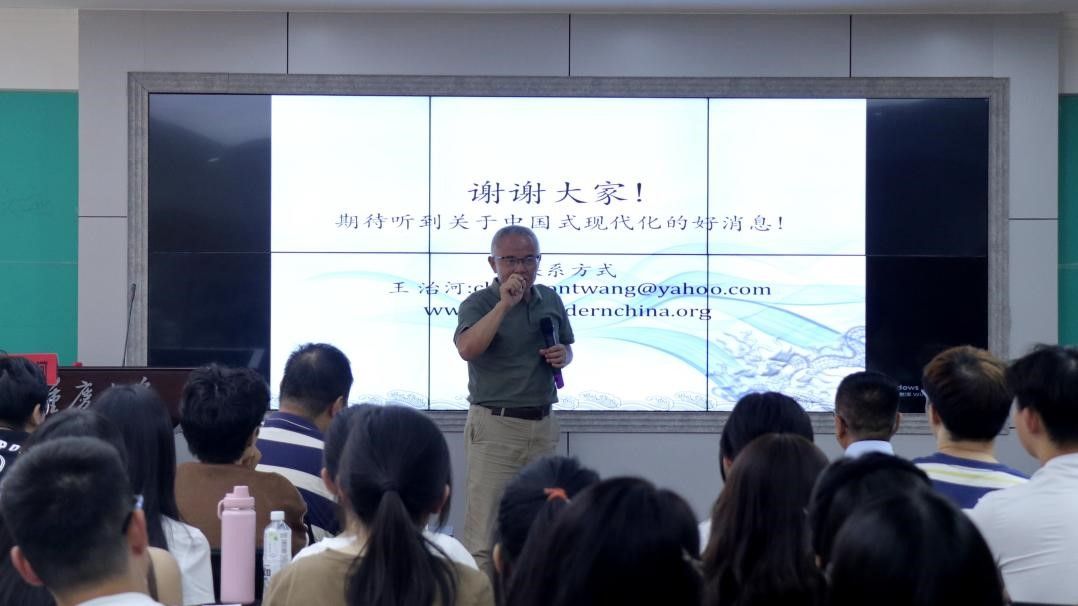 特邀中美后现代发展研究院常务副院长王治河研究员为我院师生作了题为“中国式现代化视域下生态文明的中国与世界”的专题讲座。讲座由学院副院长吕进主持,全院100余名学生积极参加。