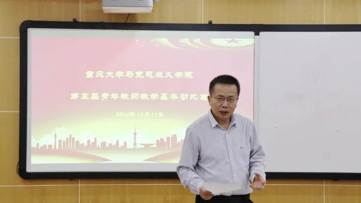 教授张礼建、陈飞、魏强和副教授陈培礼、蒋荣担任比赛评审,我院青年教师积极参赛。