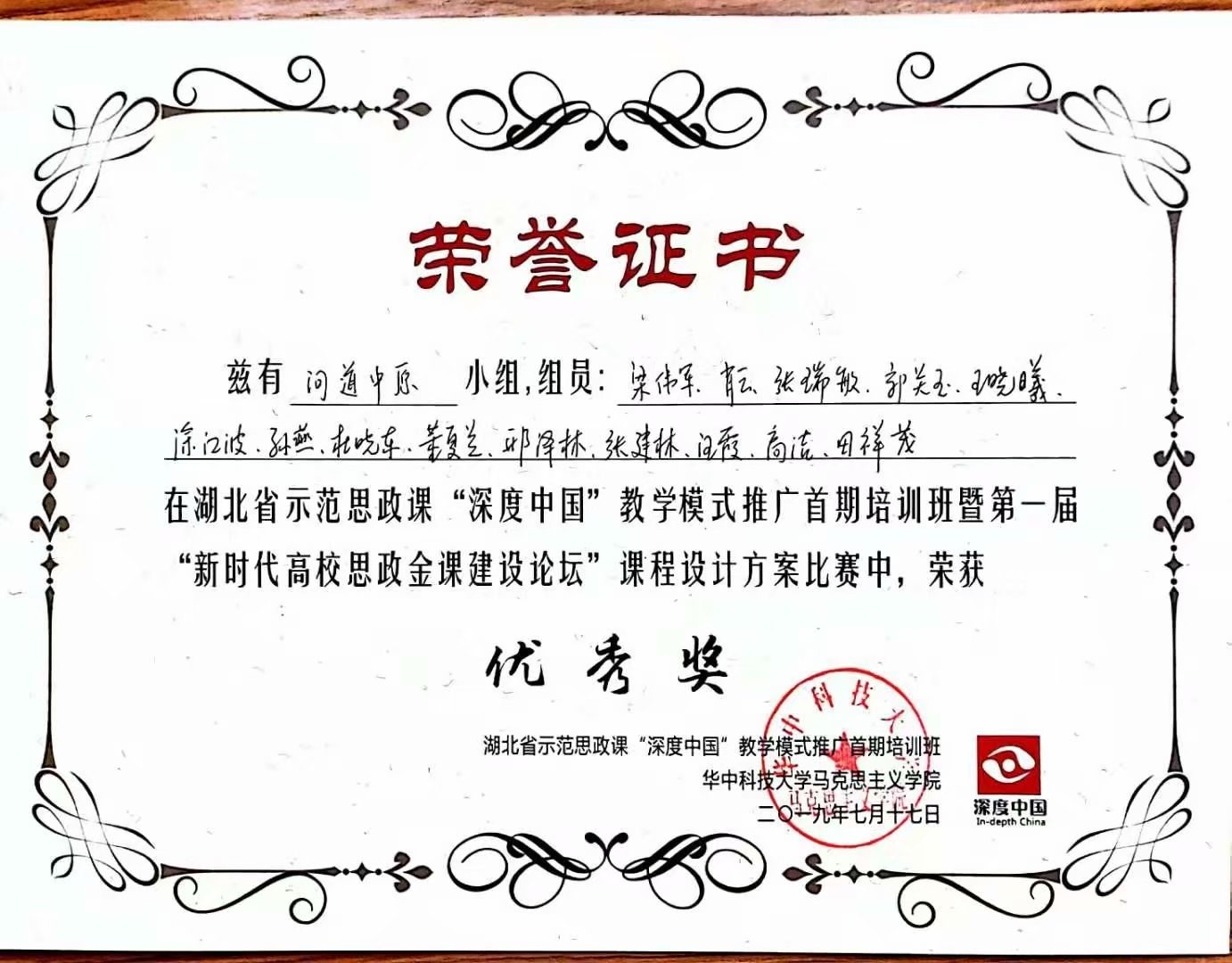 在课程设计展示和评比环节,每组都使出了洪荒之力。现场涌现出了“歌唱中国”“耕读中原”“温情中国”等寓意深刻和独具匠心的课程设计,受到在场嘉宾的高度评价。课程设计方案评比环节由专家评分和在场观众利用微助教线上评分组成。其中,蒋楼博士所在的“耕读中国”小组的课程设计方案被评为二等奖,肖云教授所在的“问道中原”小组的课程设计方案被评为优秀奖。