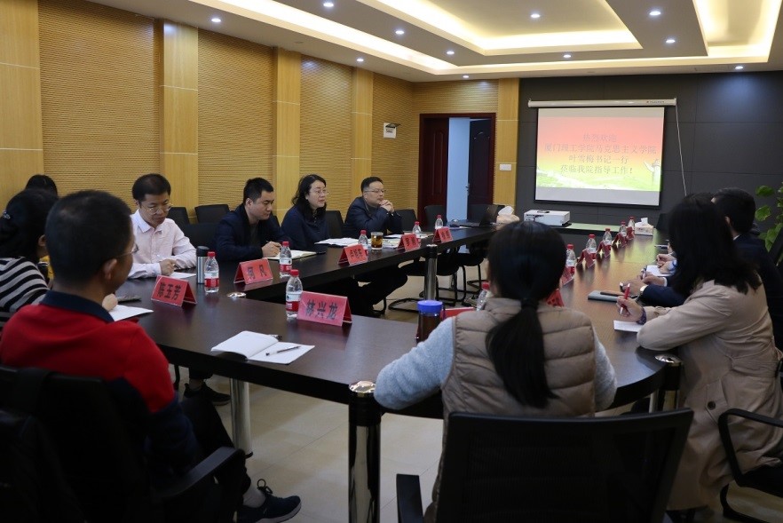 叶雪梅书记一行的到来表示热烈欢迎。接着,她就我院的建院历史、基地建设、学科建设以及师资力量作简要介绍,并就关于教师的职称评定、人才引进、队伍建设的具体做法作重点分享。随后,徐鲲重点介绍了我院在教学改革方面的创新性做法。
