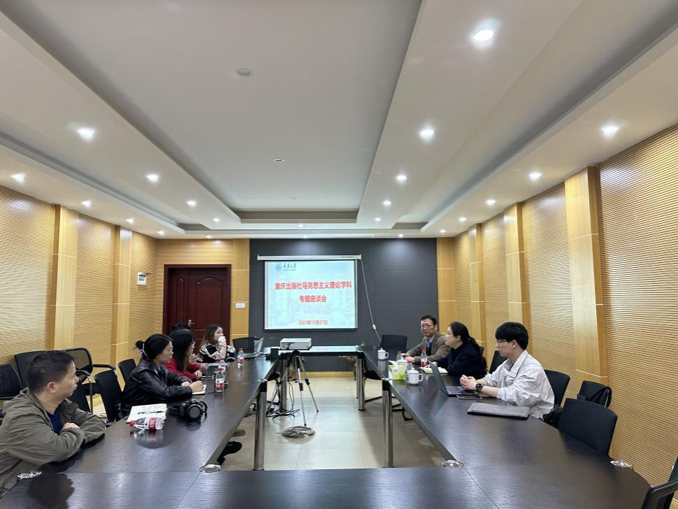 2023年10月27日下午,重庆出版集团重点图书编辑室副主任林郁、编辑谭翔鹏到我院就出版马克思主义理论学科专著召开专题座谈会。座谈会在学院414会议室举行,我院副院长吕进及青年教师代表参加座谈。