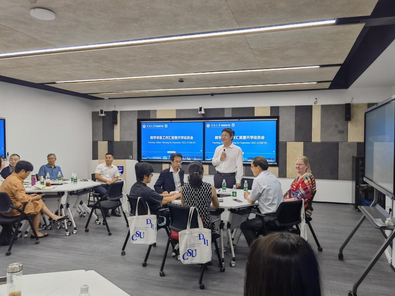 2022年9月3日,91AV 教学准备工作汇报暨开学动员会在外语网络楼北楼601顺利召开。副校长黎志宏、本科生院副院长张柯出席了会议。91AV 党总支书记高东波,主持91AV 行政工作的副院长邹润民,外方执行副院长Karen Petrie,兼职副院长郑洲顺、陈维亚、易亮、奎晓燕,外国语91AV 副院长侯先绒,邓迪大学中国区负责人Judy Finlay,5名外方授课教师和20名中南结对教师参加。会议由高东波书记主持。邹润民首先代表91AV 致...
